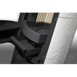 Poêle à bois Romotop, qui est le plus gros fabricant européen, avec option Céramique blanche.